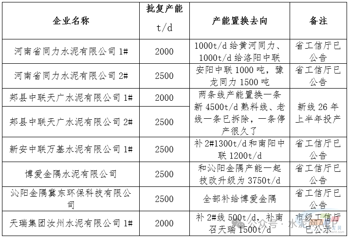 根據(jù)2025年度河南省工信部門發(fā)布的產(chǎn)能置換清單,結(jié)合河南省水泥生產(chǎn)線數(shù)據(jù),2025年度河南省已實(shí)質(zhì)性地關(guān)停全部2500t/d熟料線,成為繼山東省之后又一個(gè)全部關(guān)停2500t/d熟料線的水泥大?。ㄌ胤N水泥生產(chǎn)線除外);具體數(shù)據(jù)如下: