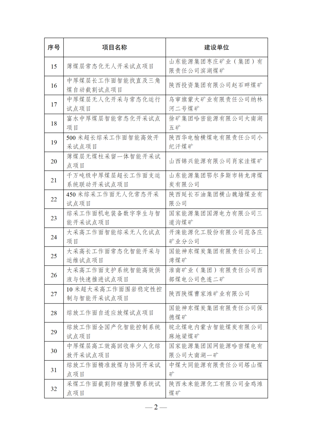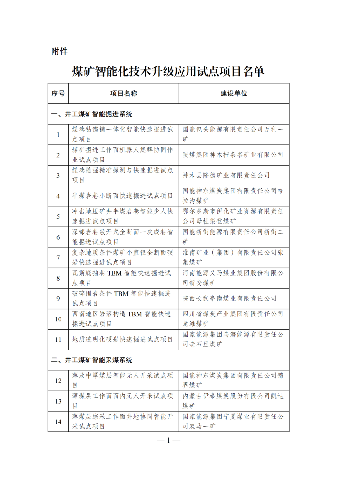 附件:煤礦智能化技術(shù)升級應(yīng)用試點(diǎn)項(xiàng)目名單